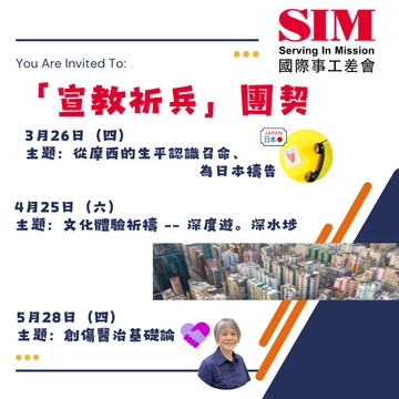 感謝您的禱告支持,如有任何查詢,歡迎來電 (852) 9614-8444 或 電郵 hongkong.admin@sim.org 聯絡我們