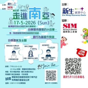 主辦單位:SIM國際事工差會(香港)、新生資源中心